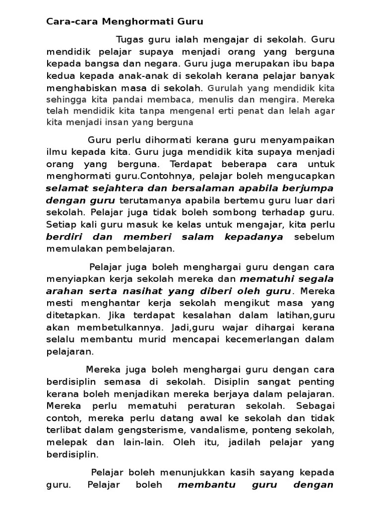 Kepimpinan murid selalu akan menganggap guru sebagai pemimpin yang baik yang akan diikutinya. Menghormati guru merupakan kewajiban, ketika bertemu seyogyanya kita harus mengucapkan salam kepada guru, berjabat tangan dan mencium tangannya, sembari menebar senyum kepada guru. Apr 20, 2019 · teks pidato menghormati orang tua dan guru assalamualaikum warahmatullahi wabarakatuh. Nov 30, 2021 · guru bisa memperkaya diri kita dengan ilmu oleh karena itu sangatlah patut manusia di dunia ini menghormati gurunya. Pengkaji atau guru boleh melakukan pemerhatian melalui video atau meminta orang lain membuat pemerhatian ke atasnya untuk dijadikan data dalam kajian yang akan dilakukan.